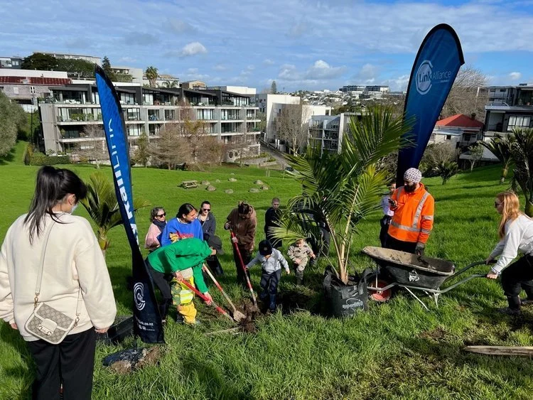 During the work completion celebrations, community members planted three Nikau palm trees on the hill of the park.