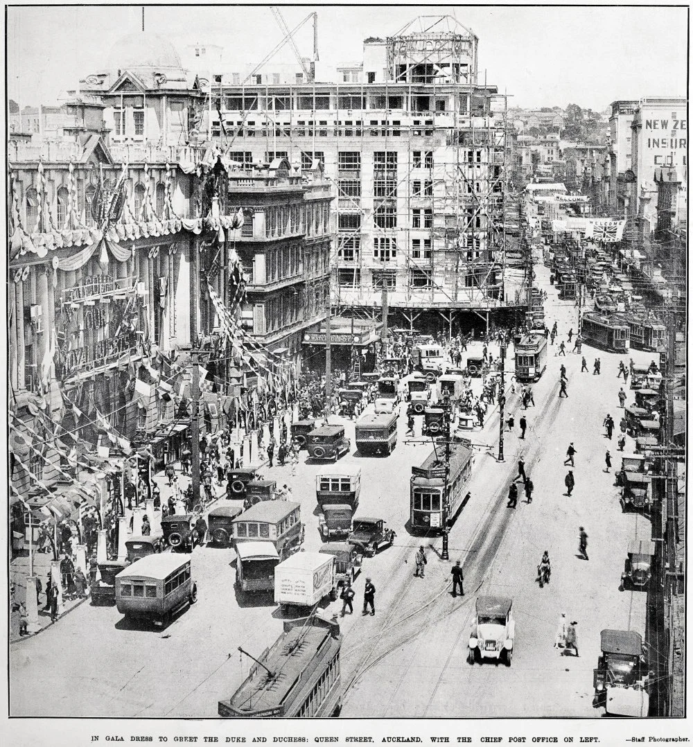 What became the Britomart Transport Centre in Downtown Auckland was orignally Auckland’s grand Chief Post Office. It was opened in 1912 by prime minister William Massey in front of a crowd of about 8000.